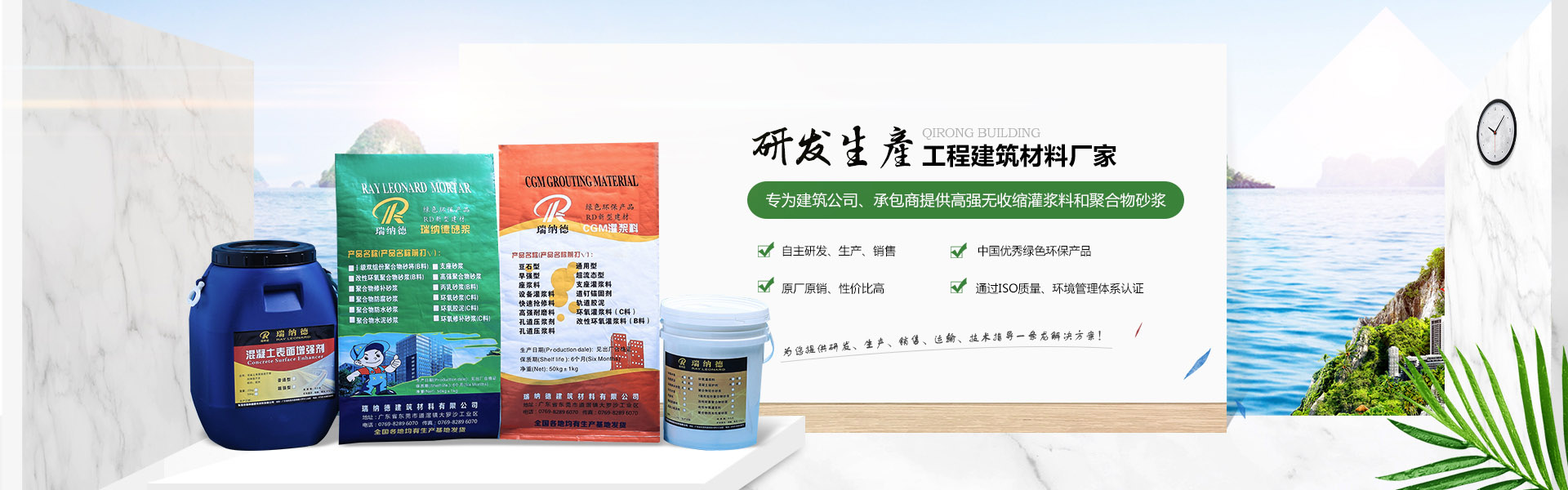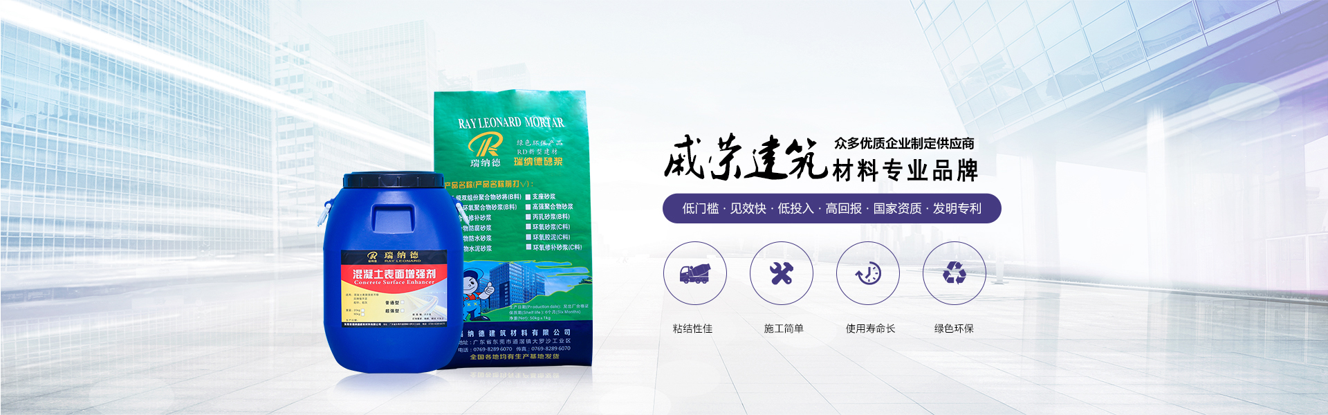 東莞市戚榮建筑材料有限公司是東莞市瑞納德建筑材料有限公司旗下子公司,是一家集研發(fā)、生產(chǎn)、銷(xiāo)售、技術(shù)服務(wù)為一體的技術(shù)型企業(yè),,并通過(guò)ISO9001:2000質(zhì)量管理體系及ISO14001:2004環(huán)境管理體系世界標(biāo)準(zhǔn)認(rèn)證。現(xiàn)已在廣東、浙江、北京、河南鄭州、沈陽(yáng)、重慶等均有生產(chǎn)基地。